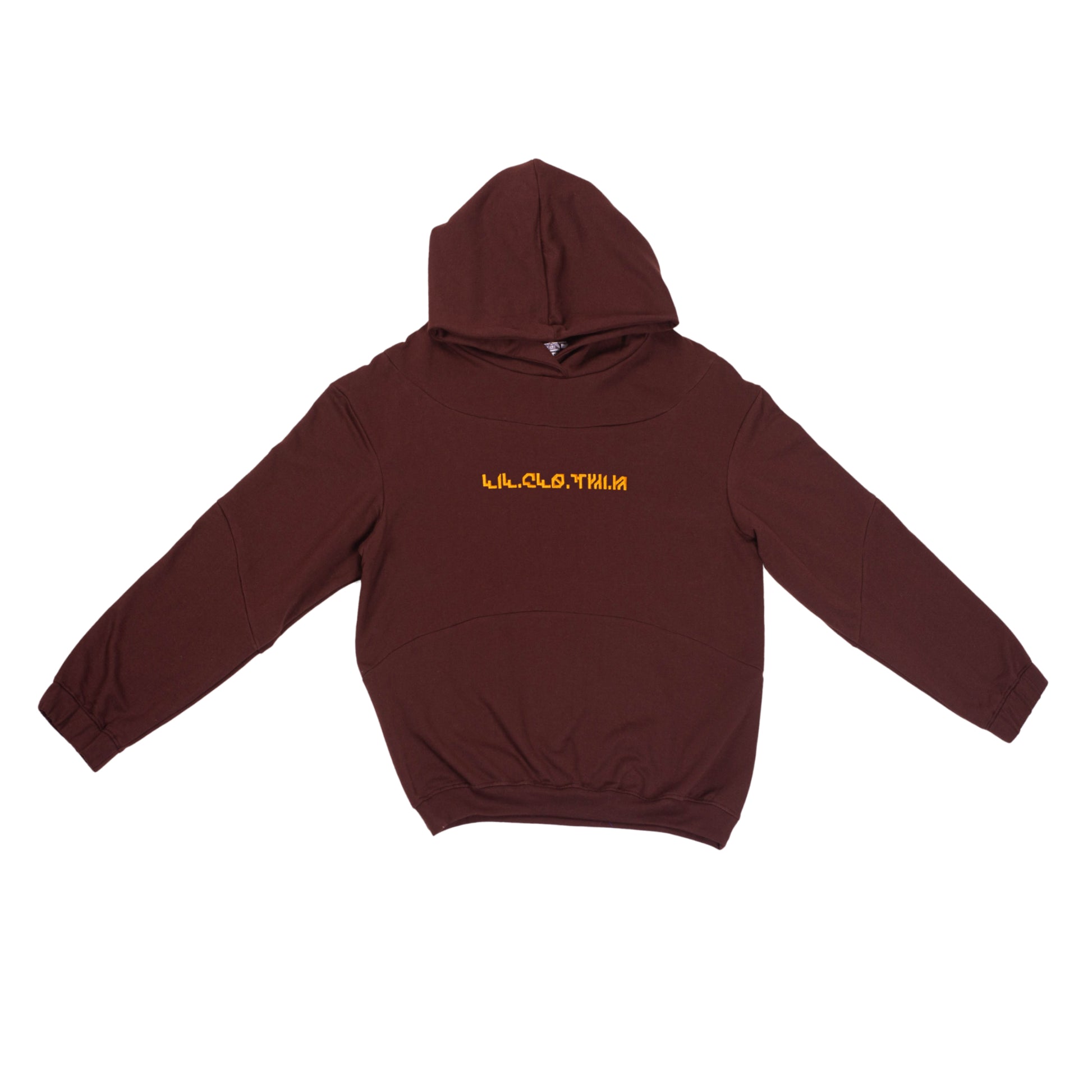 SUDADERA MARRÓN CON CAPUCHA BORDADA EN NARANJA METALIZADO